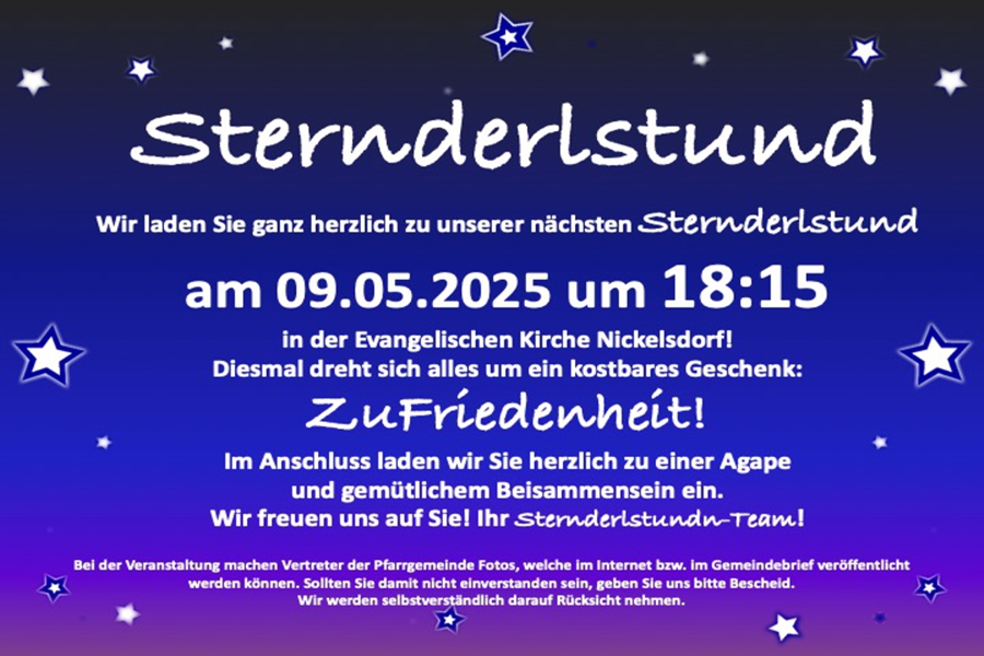 Einladung zur nächsten Sternderlstund am Freitag, dem 09.05.2025.