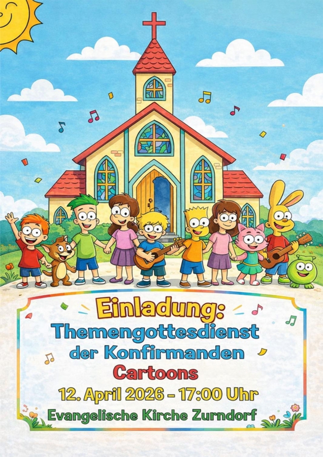 Ein besonderer Gottesdienst, den unsere Konfirmandinnen und Konfirmanden von Anfang bis Schluss selbst gestalten und feiern. Unter dem Thema "Cartoons" bringen sie ihre Gedanken, Fragen und Ideen zum Glauben auf kreative Weise ein.