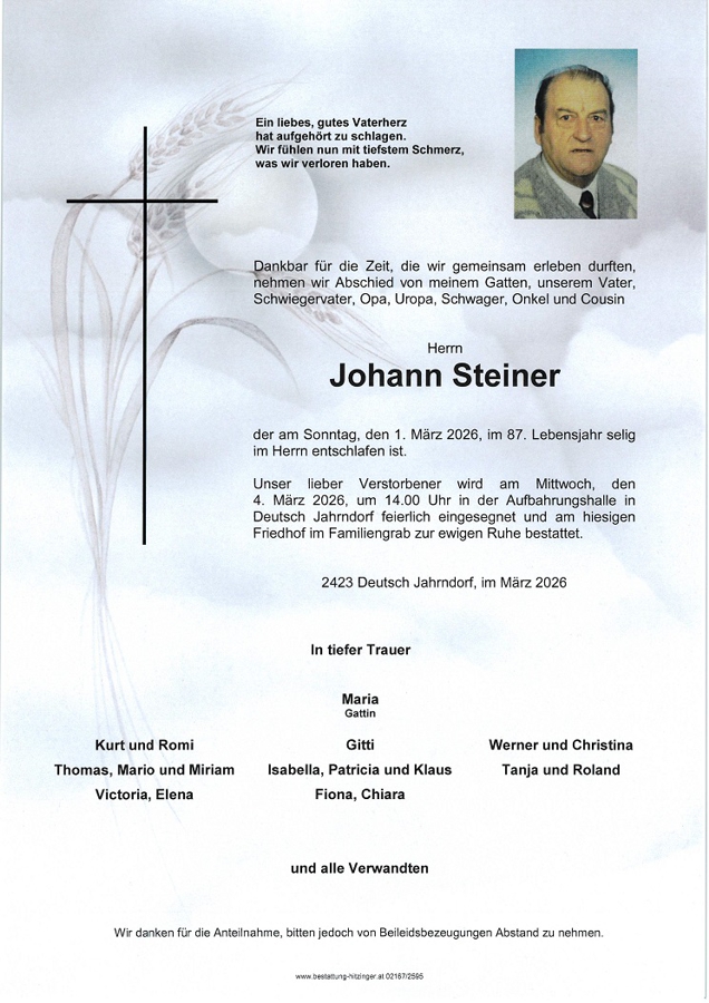 In die ewige Herrlichkeit zu sich gerufen hat der Herr über Leben und Tod:
