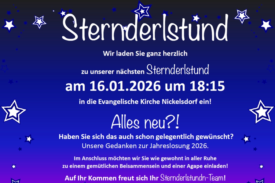 Einladung zur nächsten Sternderlstund am Freitag, dem 16.01.2026.